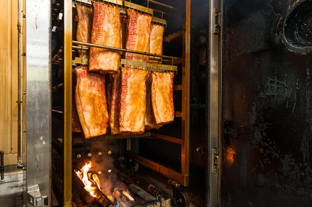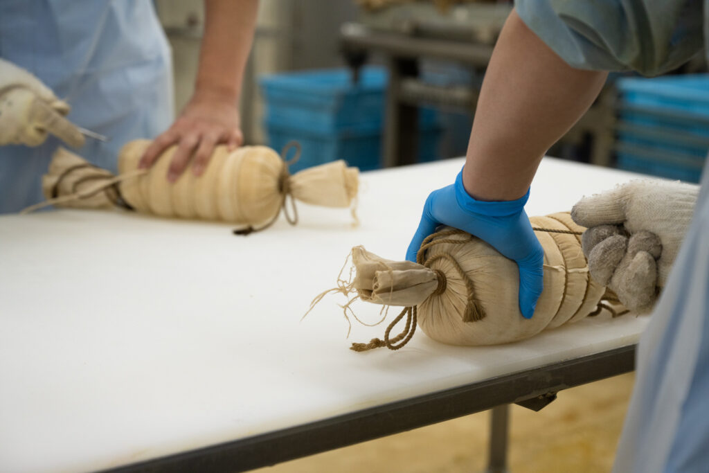 こだわりの製法 伝統の製法が肉のうま味を引き出す 量産では珍しい「乾塩製法」は、豚バラ肉の塊1枚1枚に自然塩を丁寧にすり込みます。塩の浸透作用が水分を排出し、うま味を凝縮。7日間熟成させた後、熱処理と燻煙でさらに8時間。桜チップに燻されさらに深い味わいのベーコンになります。 熟成期間と職人の技が味の決め手 生産履歴の明らかな豚肉を使い、肉のうま味を最大限に引き出すため7日間熟成。看板商品の「手巻きロースハム」は、熱処理・燻煙前の布巻きを手作業で行っています。作り手の絶妙な力加減と技がワンランク上のハムに仕上げます。 個性豊かに、風味をぎゅっと凝縮 羊や豚の天然腸に詰めるウインナーやソーセージは、原料肉を3日間塩漬けして熟成させることでうま味のもとであるアミノ酸が増します。ハーブやガーリックの他に、行者にんにくやオホーツク産のホタテ入りなど、北海道ならではの味もお楽しみいただけます。 おこっぺハムのご購入はこちら おこっぺハムを購入できる取扱い店と、WEBストアをご確認ください。 取扱い店はこちら WEB購入はこちら